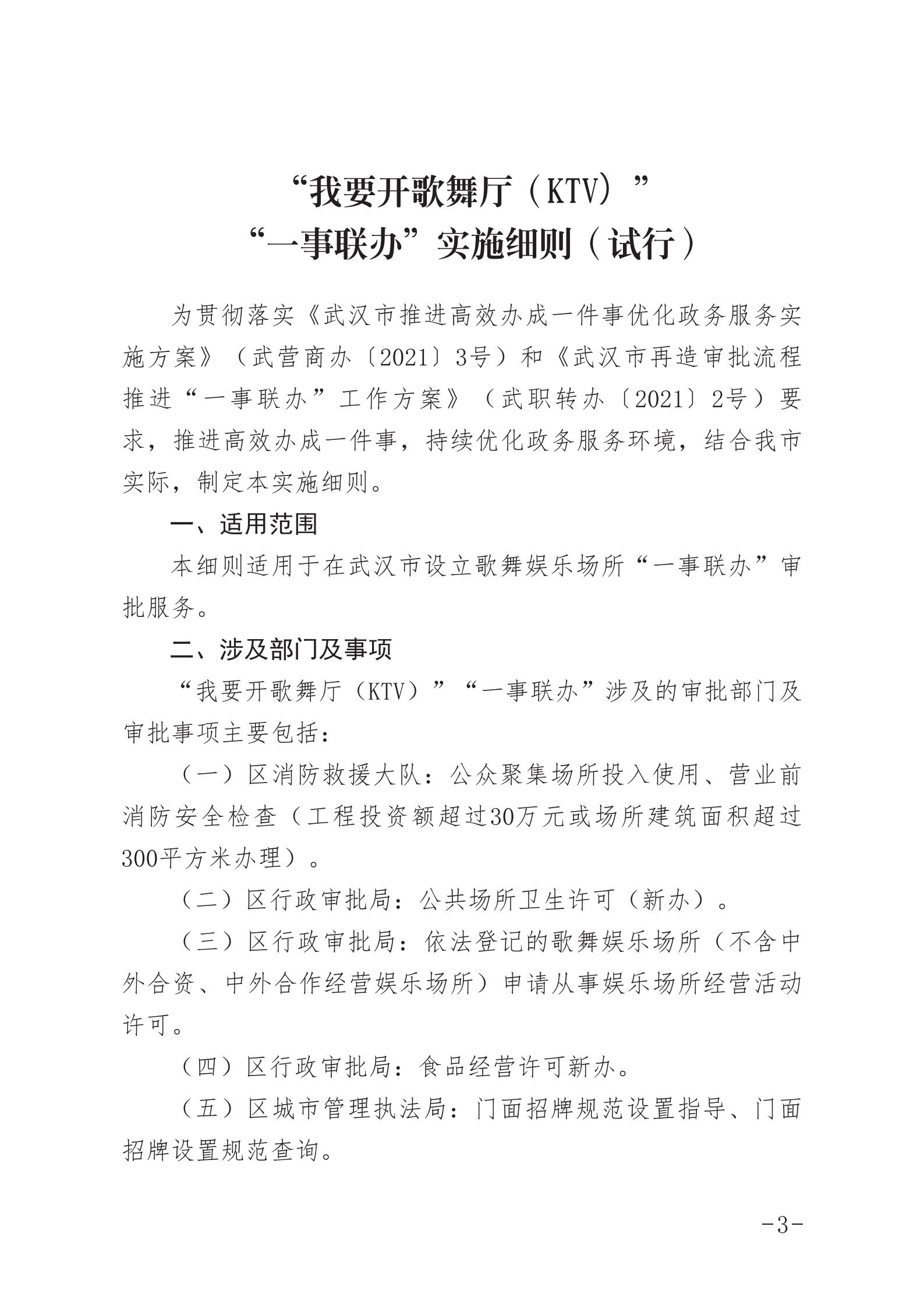 关于印发《“我要开歌舞厅(KTV) ” “一事联办”实施细则(试行)》的通知