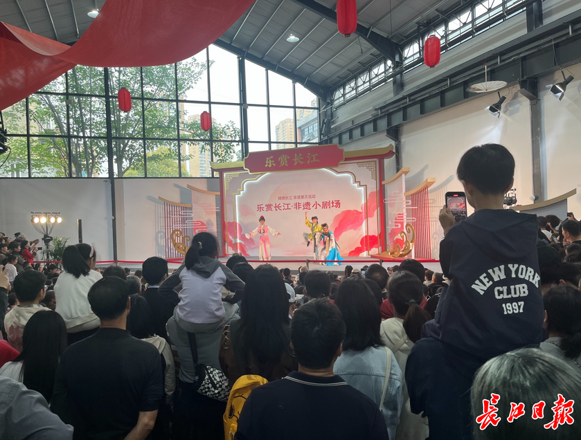 主会场内,人气最旺的属非遗小剧场,下午正值黄梅戏演出,观众将剧场围了里三层外三层,小朋友们如同过年赶集,纷纷骑在父母肩头,好探出头看到舞台。