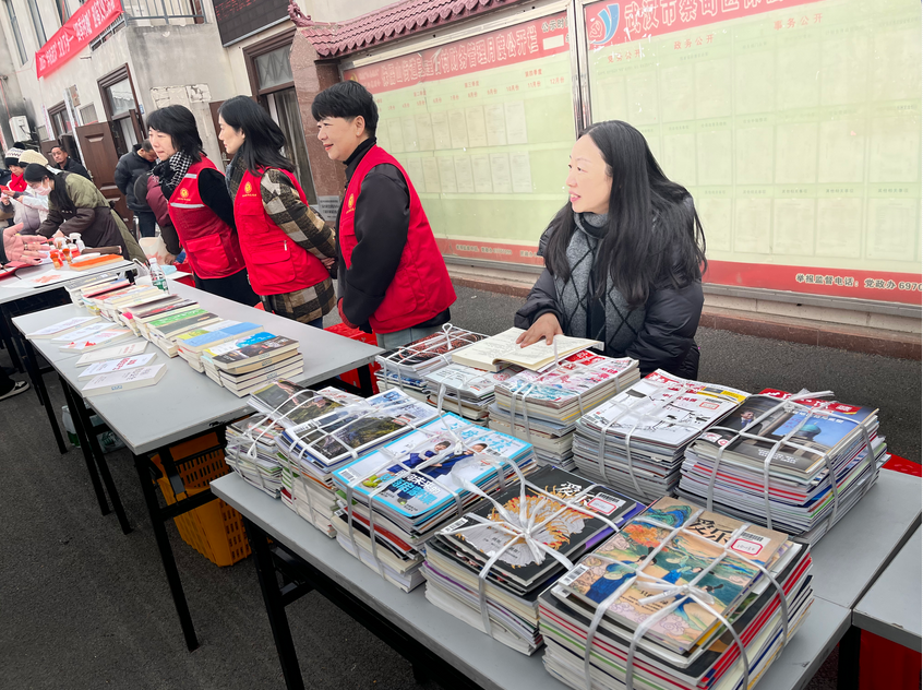 武汉市图书馆为三屋台村农家书屋送来期刊和书籍。