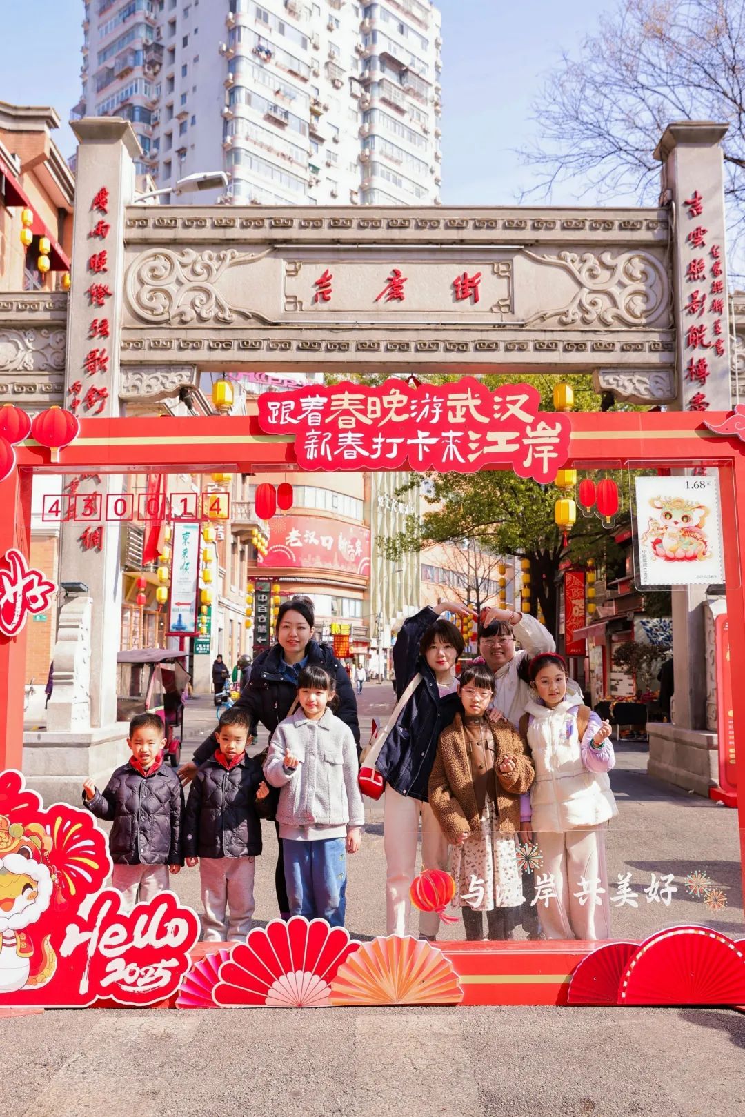 游客在吉庆街“跟着春晚来武汉·新春打卡来江岸”打卡装置前打卡。