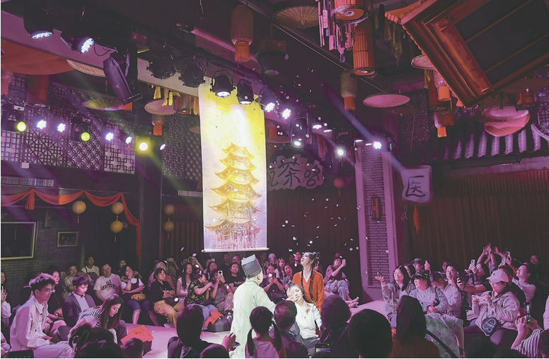 武汉说唱团都市茶座小剧场的位置正处于热门旅游打卡点黎黄陂路周边,外地游客去巴公房子拍照游玩后,再来小剧场看个沉浸式喜剧。记者采访中获悉,不少外地游客专程为观看演出规划行程,带动周边餐饮、住宿等消费增长。有游客就住在黎黄陂路的酒店,有游客计划第二天早上去三镇民生甜食馆过早,有游客表示要沿着巴公房子、咸安坊、江汉路一路漫游。