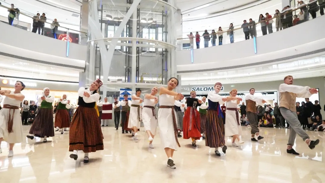 当演出开始,周末购物休闲的市民循着欢快的旋律聚拢而来,自动围成一个层层叠叠的圆圈,手机镜头齐刷刷对准中央,掌声与音乐声交织成最热烈的现场背景音。近两小时的载歌载舞让商场变身秀场,舞团成员年龄跨度从18岁到70岁,身着不同样式的民族服装,展现了热情洋溢、活泼团结的异域风情。